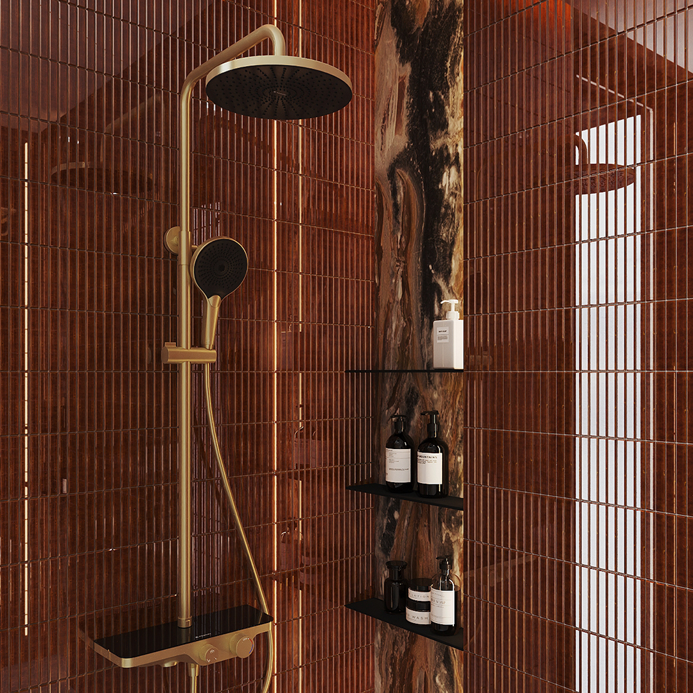 CHUVA, Душевая система с изливом , Шлифованное золото