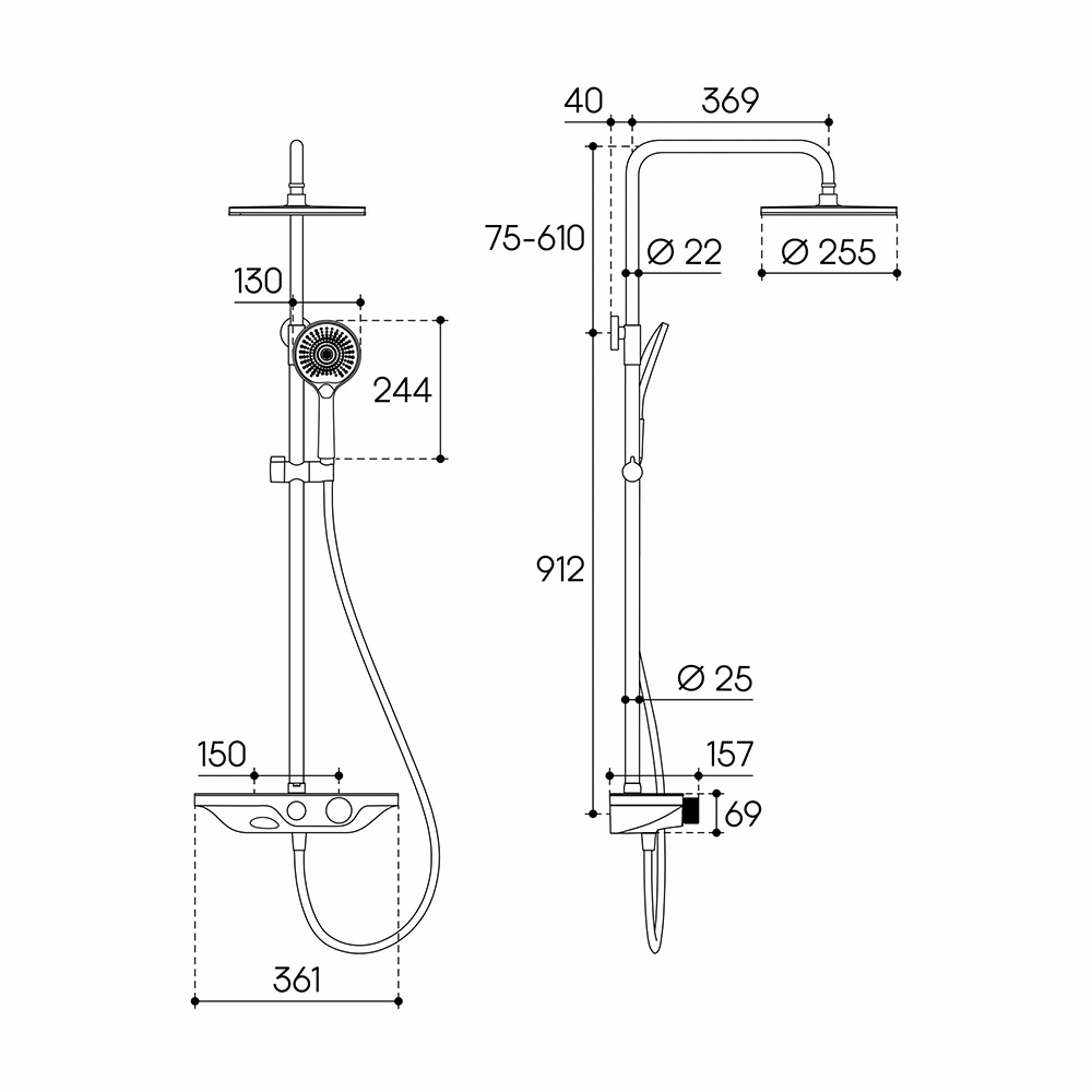 Размер верхнего душа, мм 255