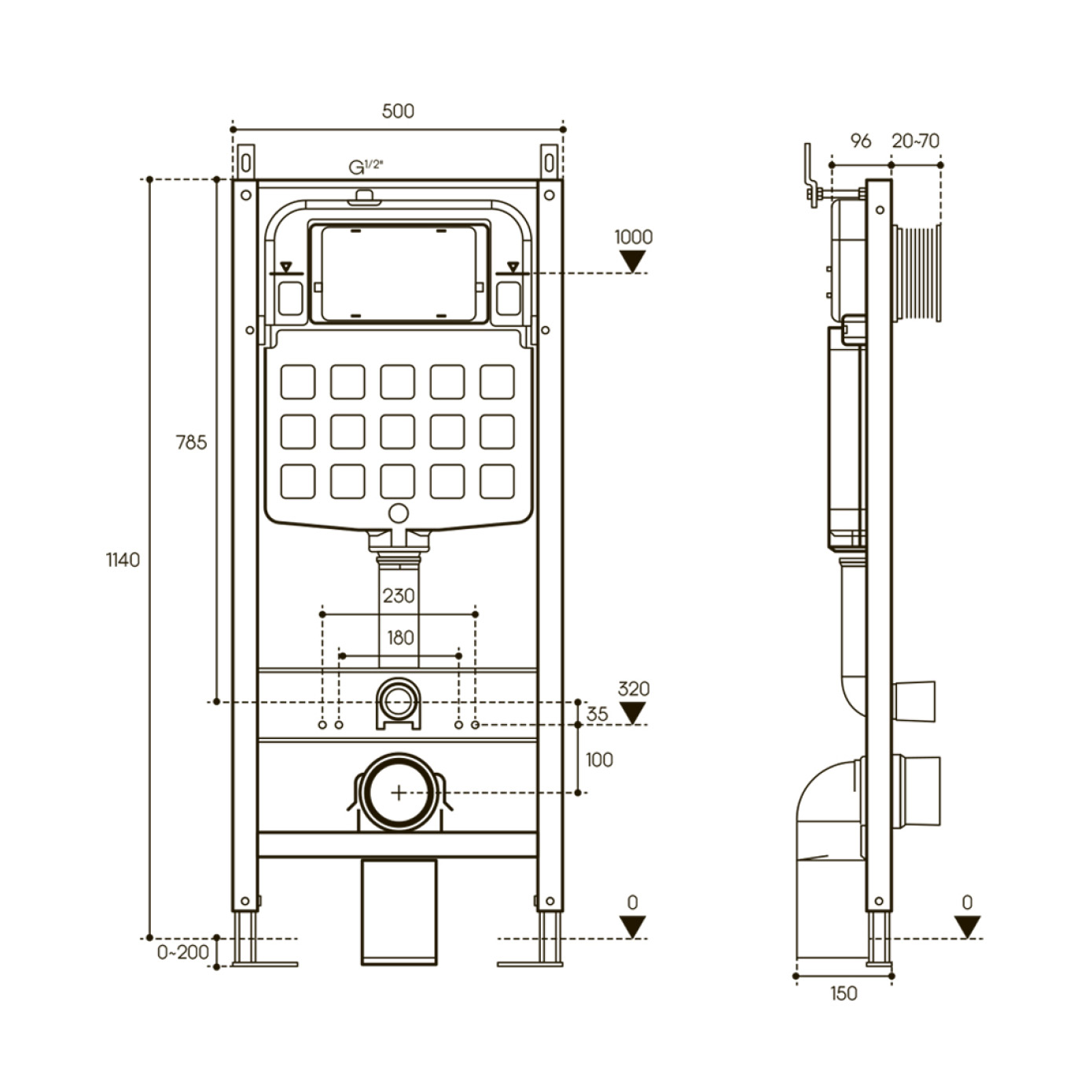 Подвод воды Скрытый/Определяется инсталляцией