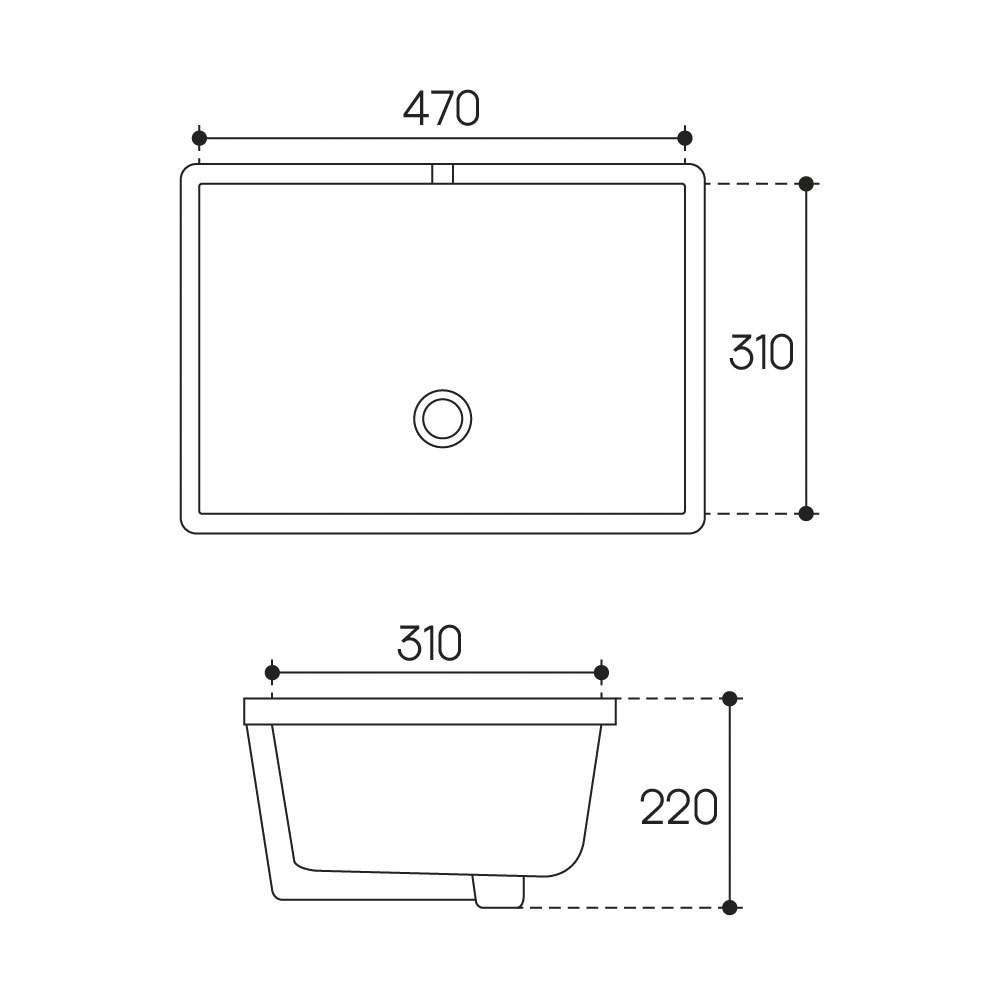 Aqueduto СОТТО/SOTTO Раковина врезная под столешницу прямоугольная 470*310, белый глянцевый