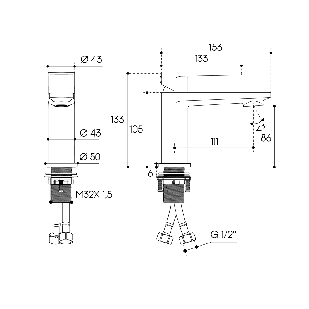 GEOMETRICO, Смеситель для раковины M, Хром GEO0200