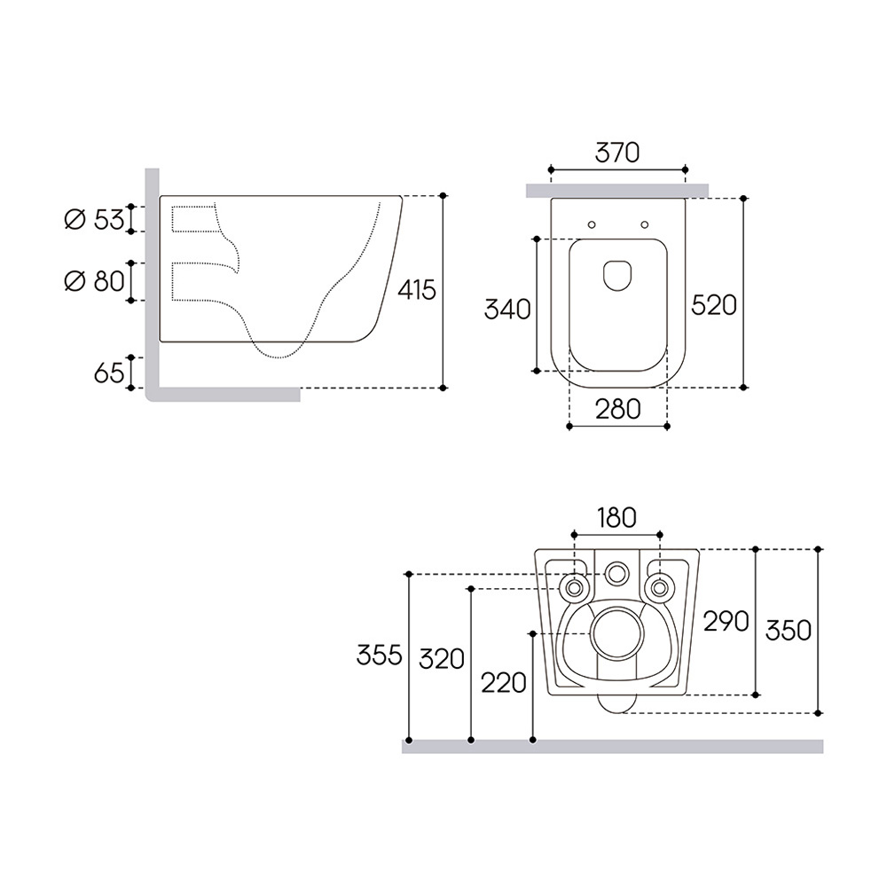 Унитаз подвесной, сиденье, комплект креплений для сиденья и монтажа унитаза, гарантийный талон, инструкция