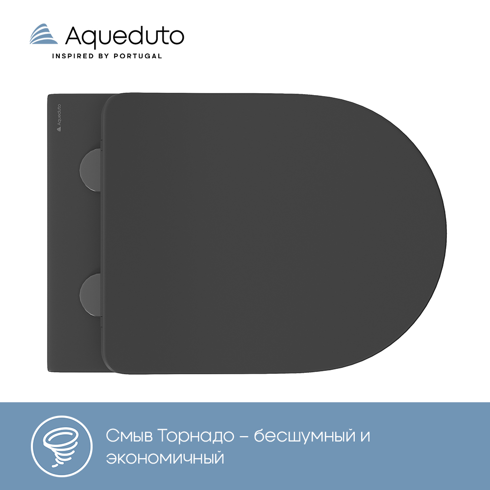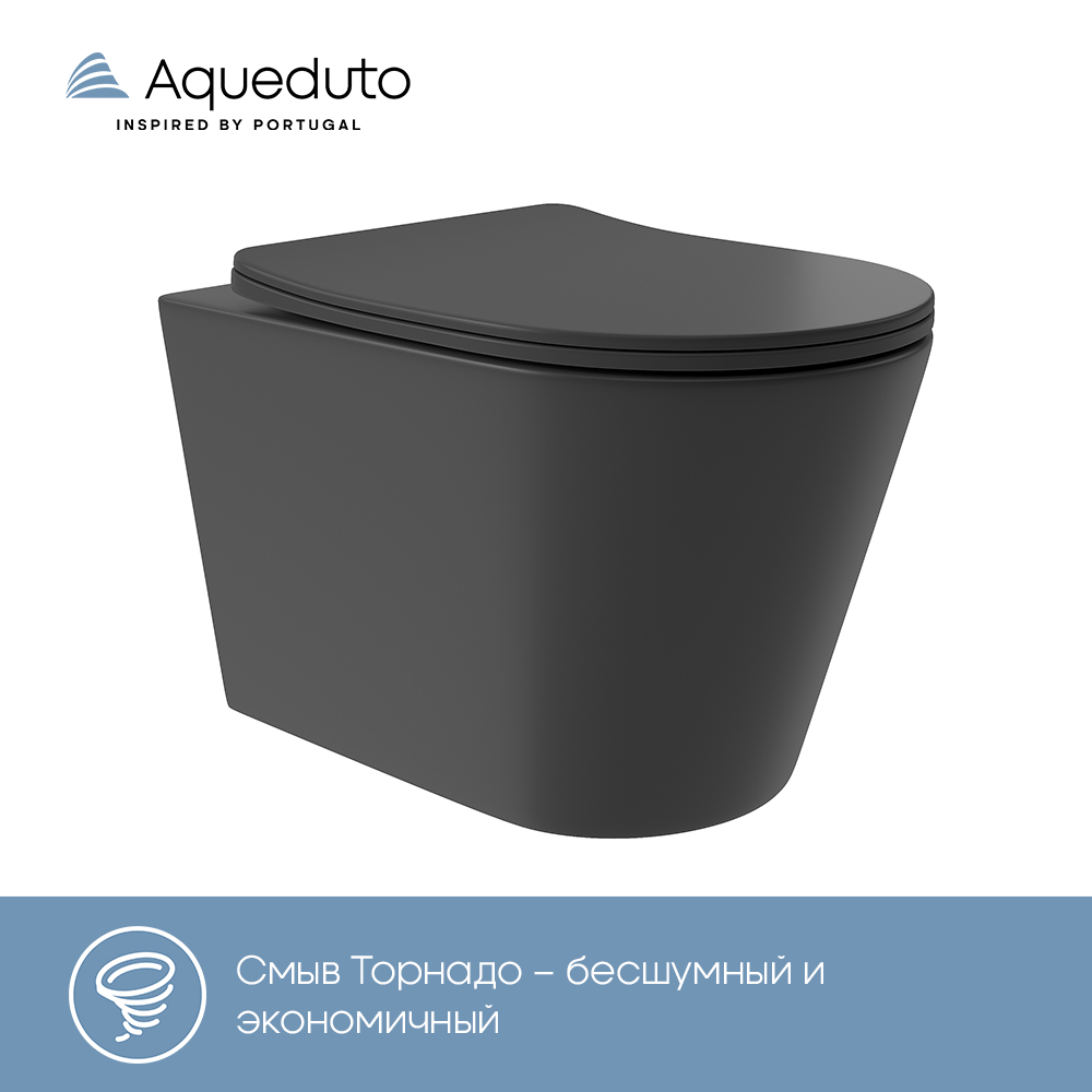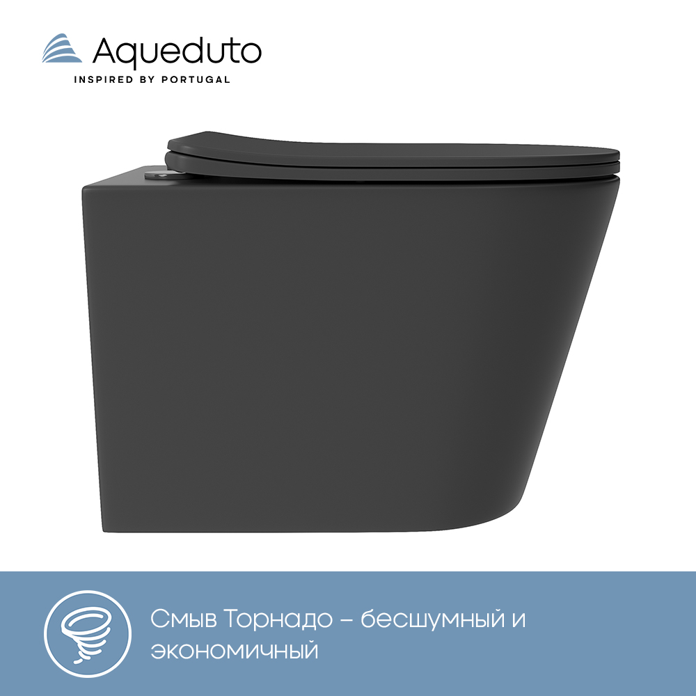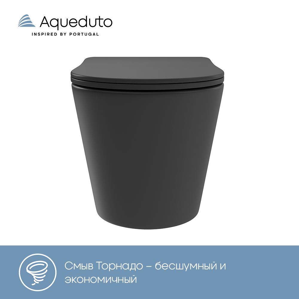 Aqueduto CONE Plus Унитаз подвесной 520*365 безободковый, Tornado, сиденье с микролифтом, черный матовый