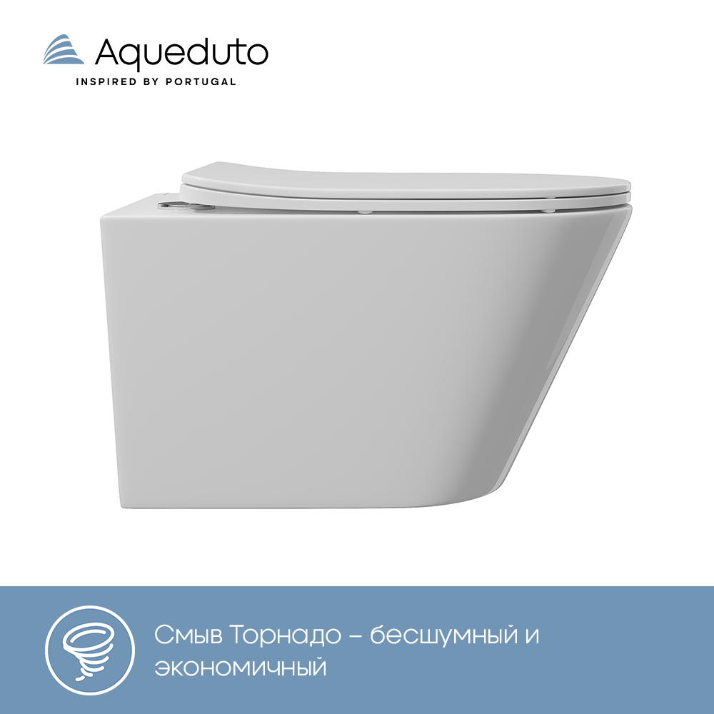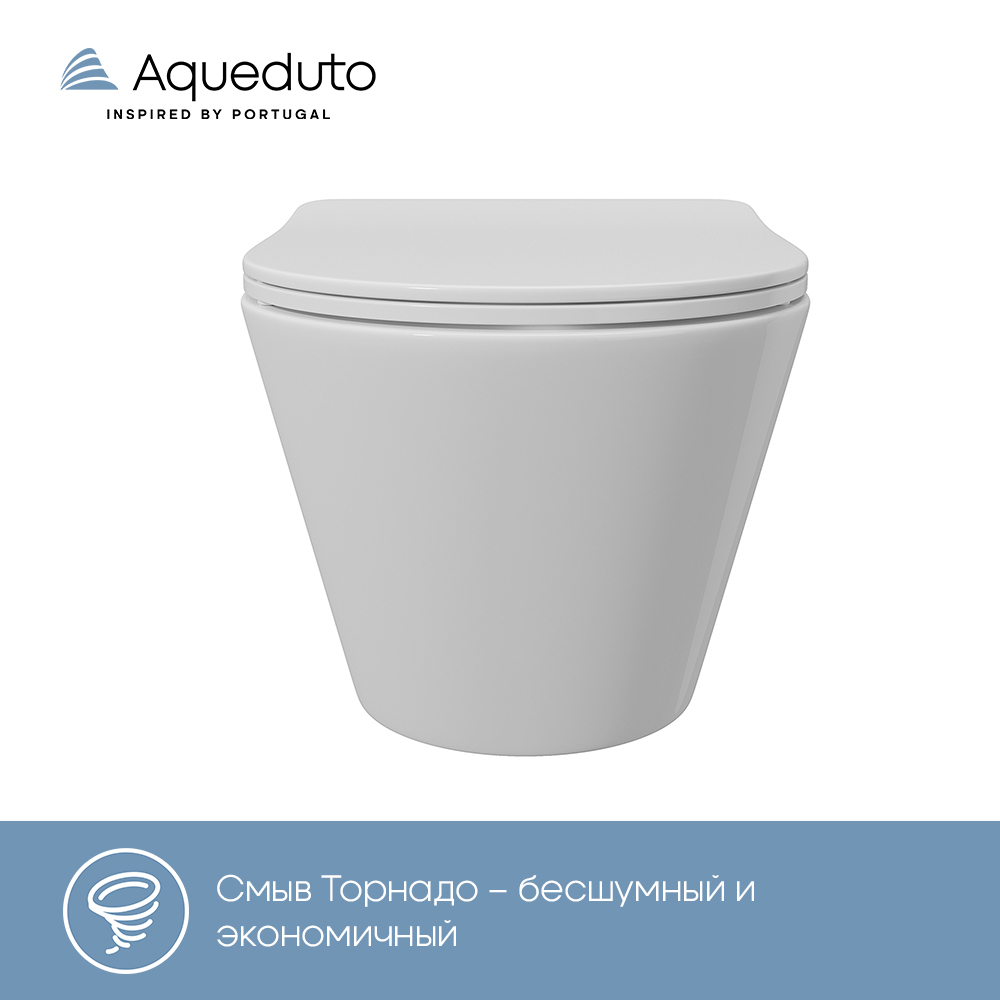 Aqueduto КОН Торнадо/CONE Tornado Унитаз подвесной 525*360 безободковый, Tornado, сиденье с микролифтом, белый глянцевый