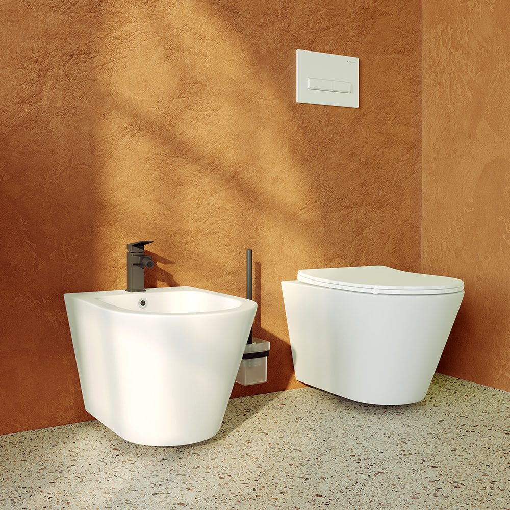 Безободковая чаша, ультратонкое, быстросъемное сиденье из дюропласта с функцией плавного закрывания (микролифт), антигрязевое покрытие, устойчивость к царапинам, смыв Tornado, экономия воды