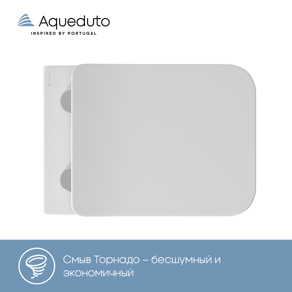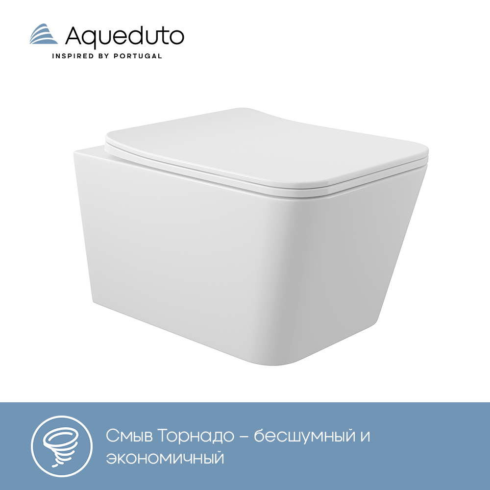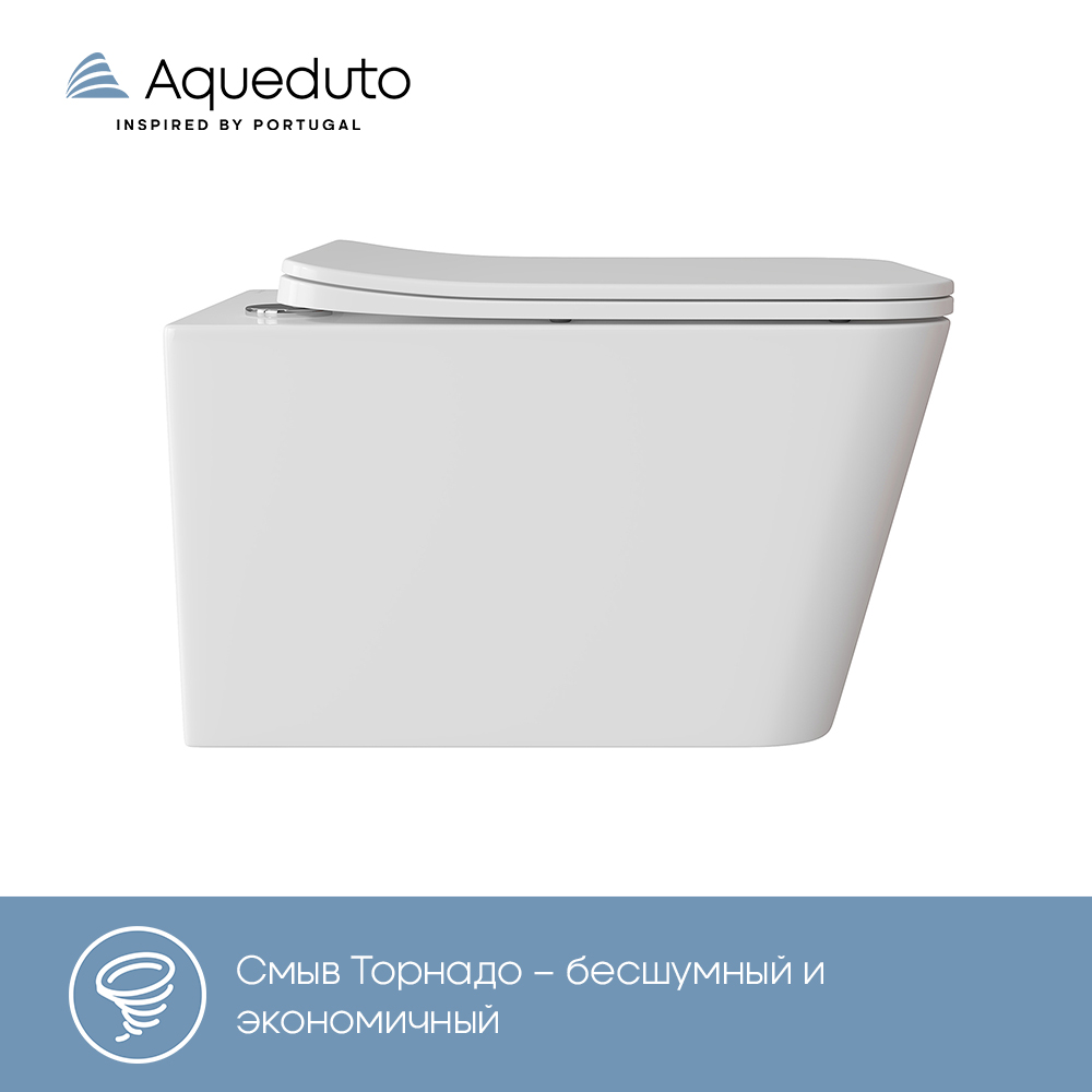 Aqueduto МАСИО Торнадо/MACIO Tornado Унитаз подвесной 520*370 безободковый, Tornado, сиденье с микролифтом, белый глянцевый