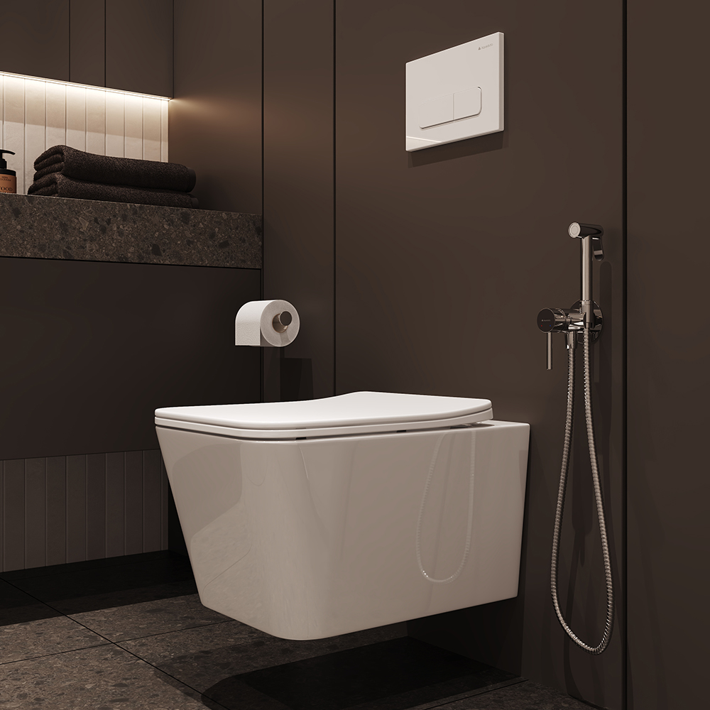 Унитаз подвесной, сиденье, комплект креплений для сиденья и монтажа унитаза, гарантийный талон, инструкция