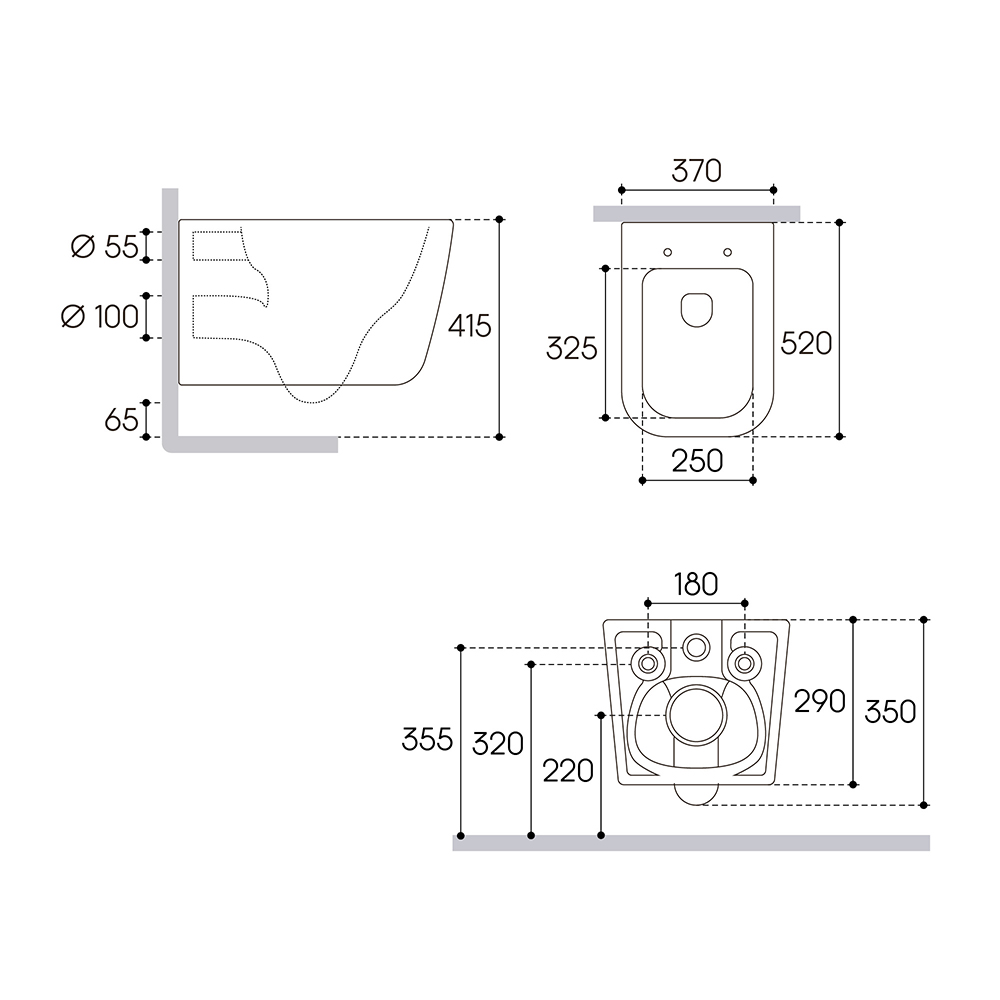 Унитаз подвесной, сиденье, комплект креплений для сиденья и монтажа унитаза, гарантийный талон, инструкция
