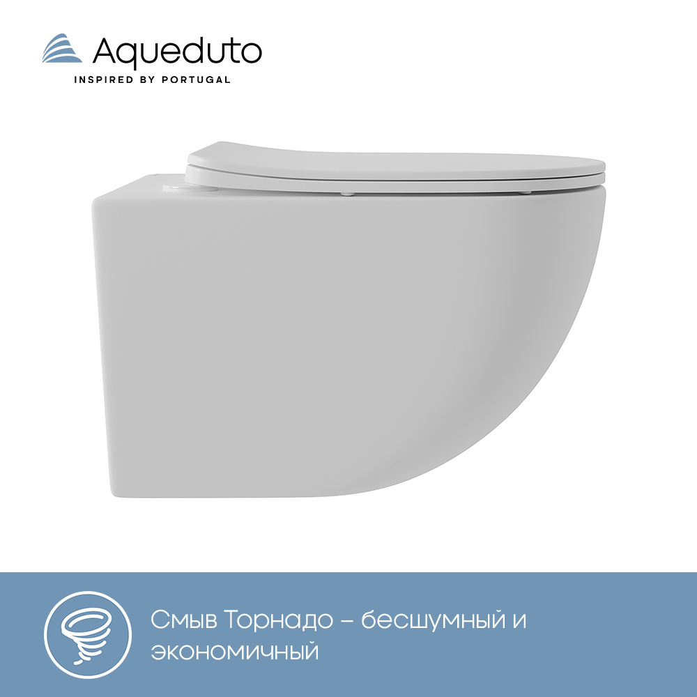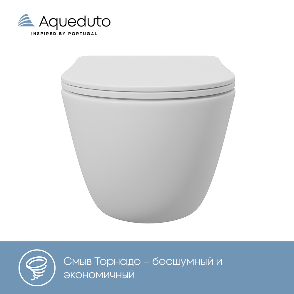 Aqueduto OVO Tornado Унитаз подвесной 525*360 безободковый, Tornado, сиденье с микролифтом, белый матовый