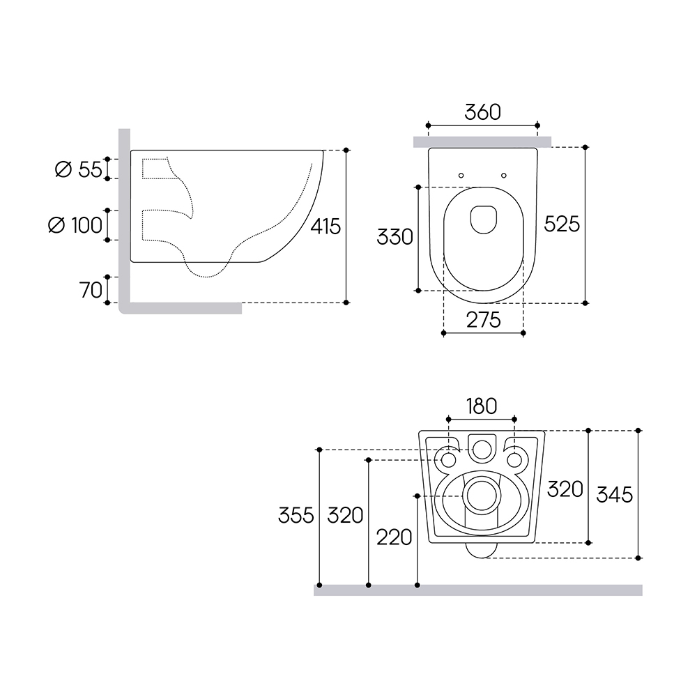 Унитаз подвесной, сиденье, комплект креплений для сиденья и монтажа унитаза, гарантийный талон, инструкция