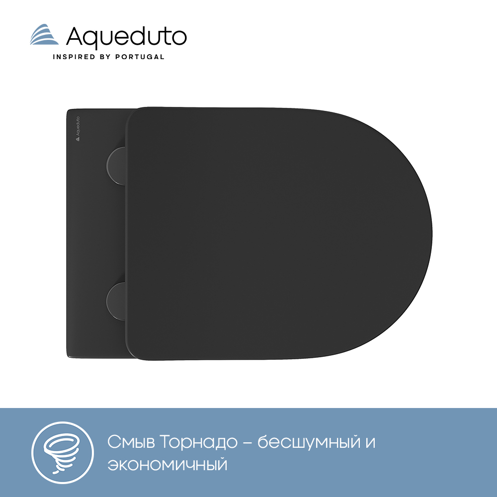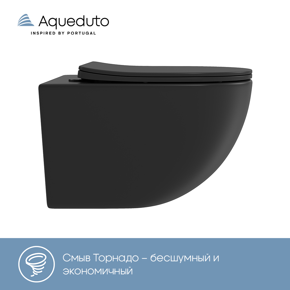 Aqueduto OVO Tornado Унитаз подвесной 525*360 безободковый, Tornado, сиденье с микролифтом, черный матовый