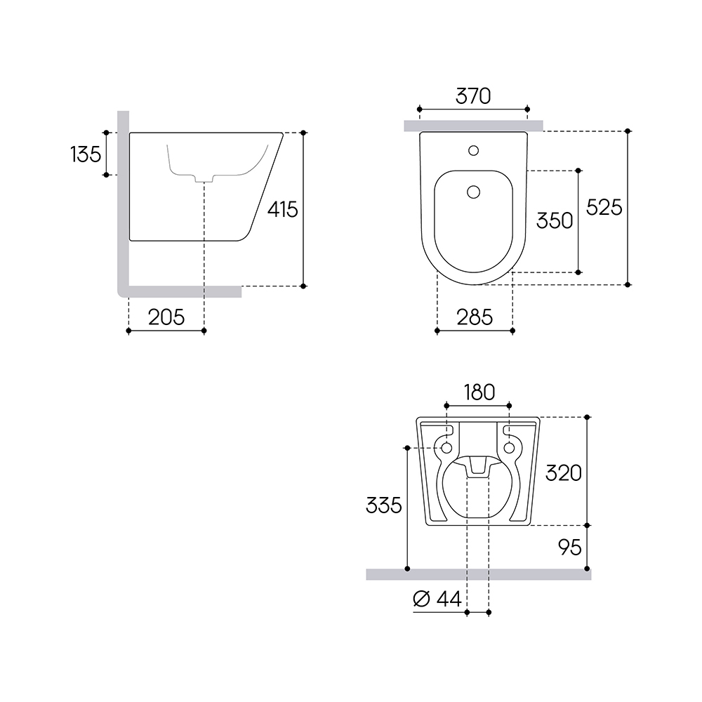 ОВО/OVO, Биде подвесное, серый матовый OVO0330