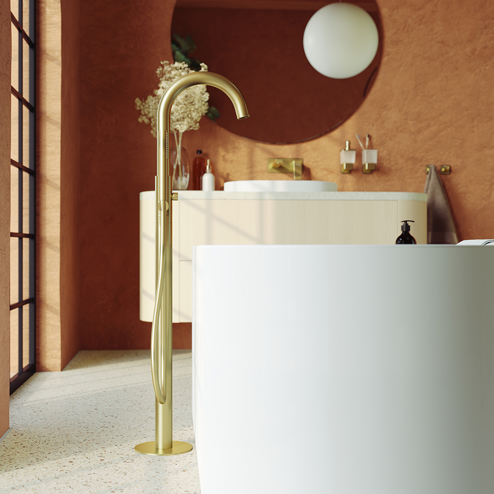 CANO, Смеситель для ванны напольный, шлифованное золото