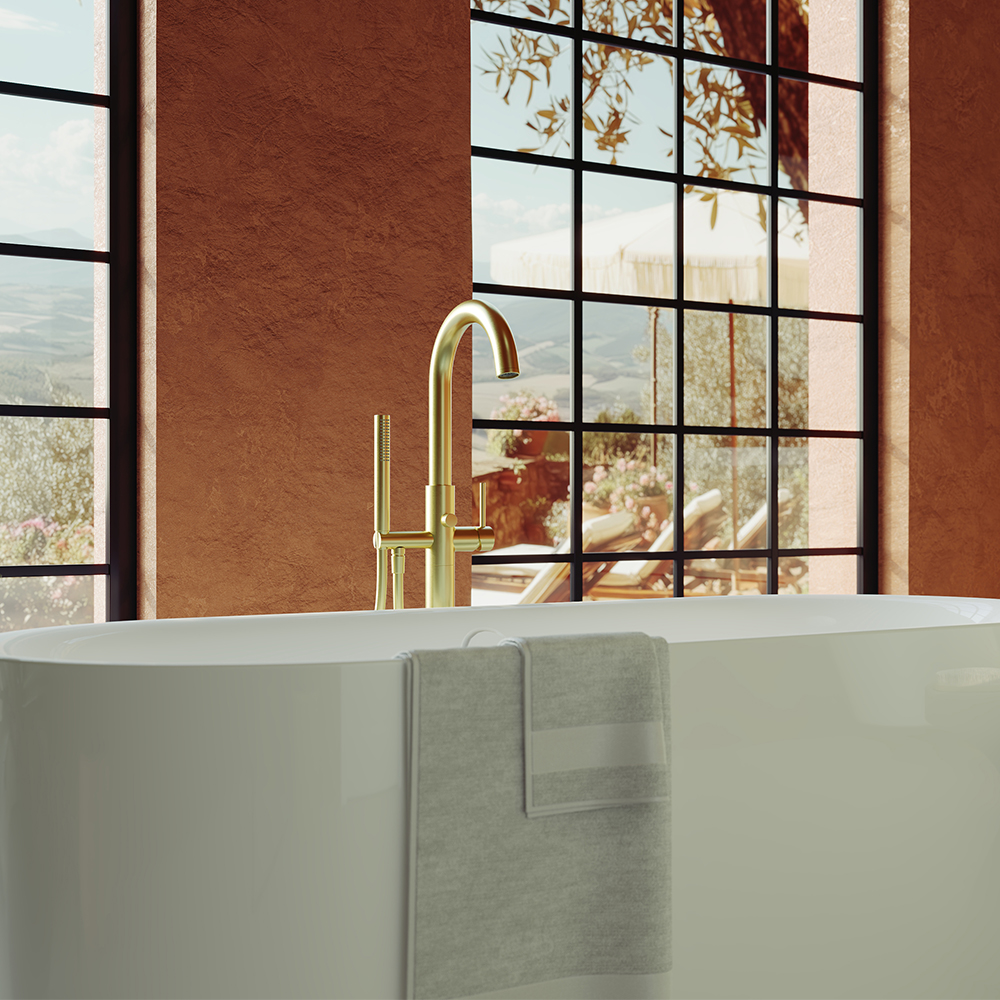 КАНО/CANO, Смеситель для ванны напольный, шлифованное золото