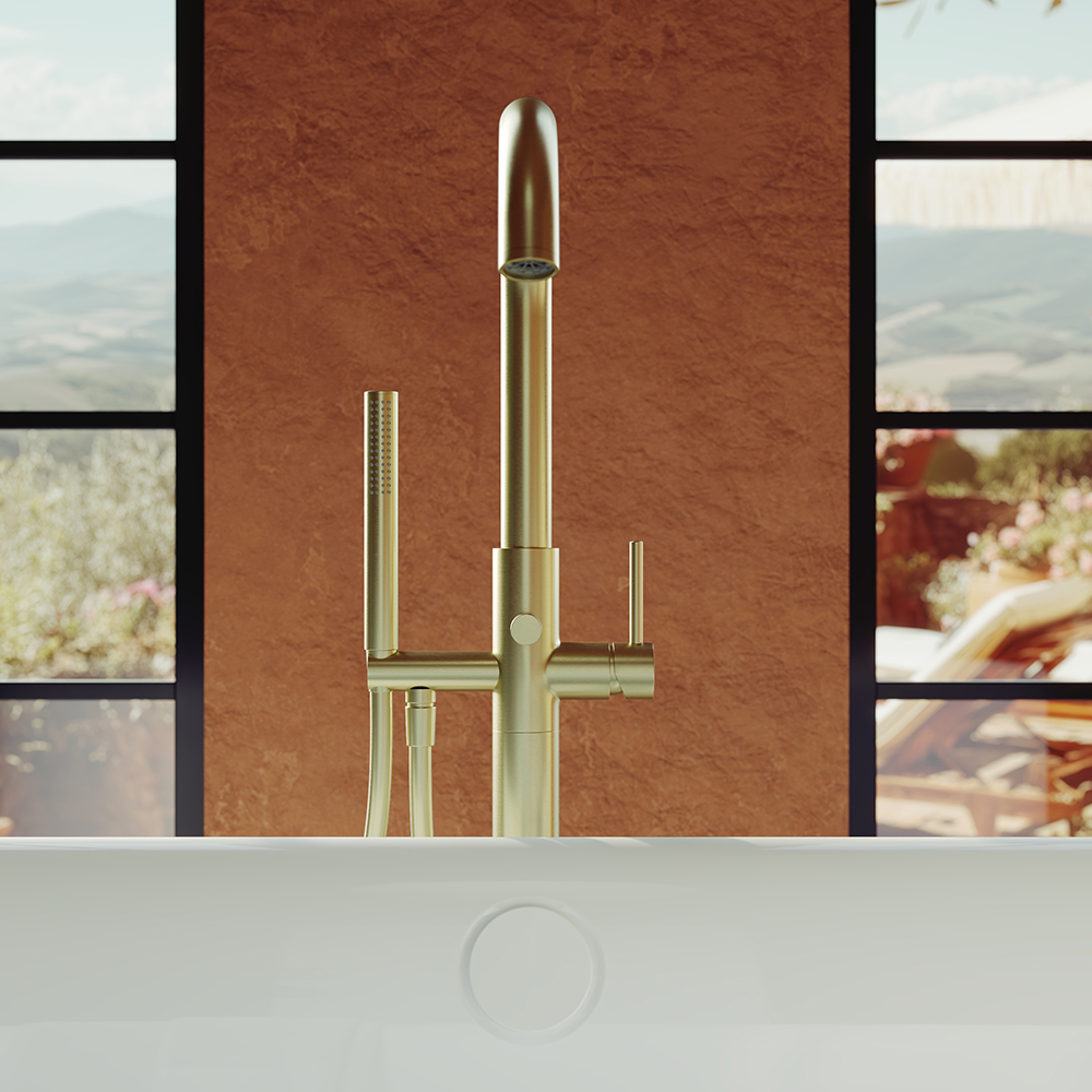 Aqueduto CANO Смеситель для ванны напольный, шлифованное золото