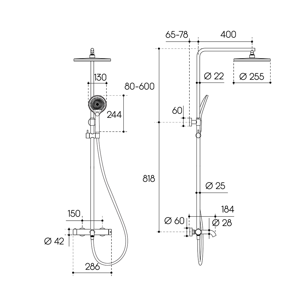 CHUVA, Душевая система с изливом для ванны, Хром CHU0200