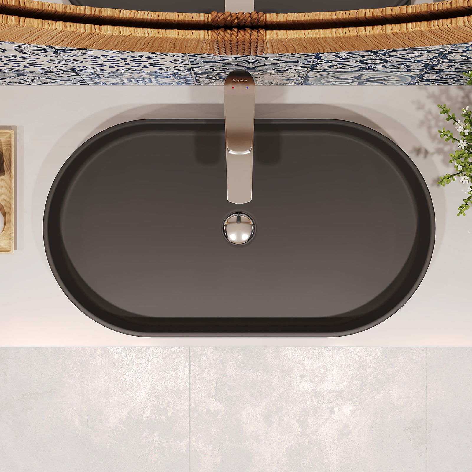 Aqueduto ESPIRAL Раковина накладная овальная 390*600, черный матовый