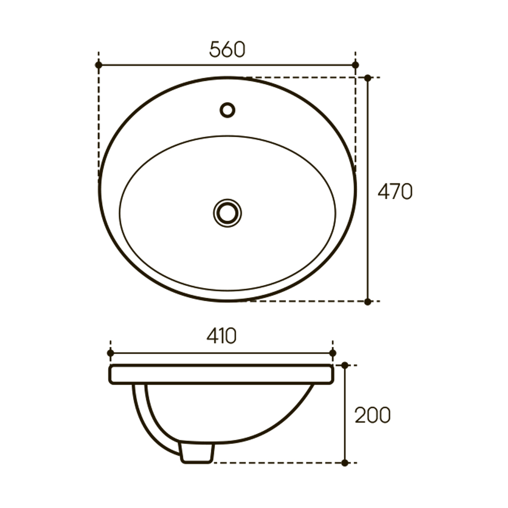 Aqueduto INSERTO Раковина врезная овальная с отверстием под смеситель 560*470, белый глянцевый