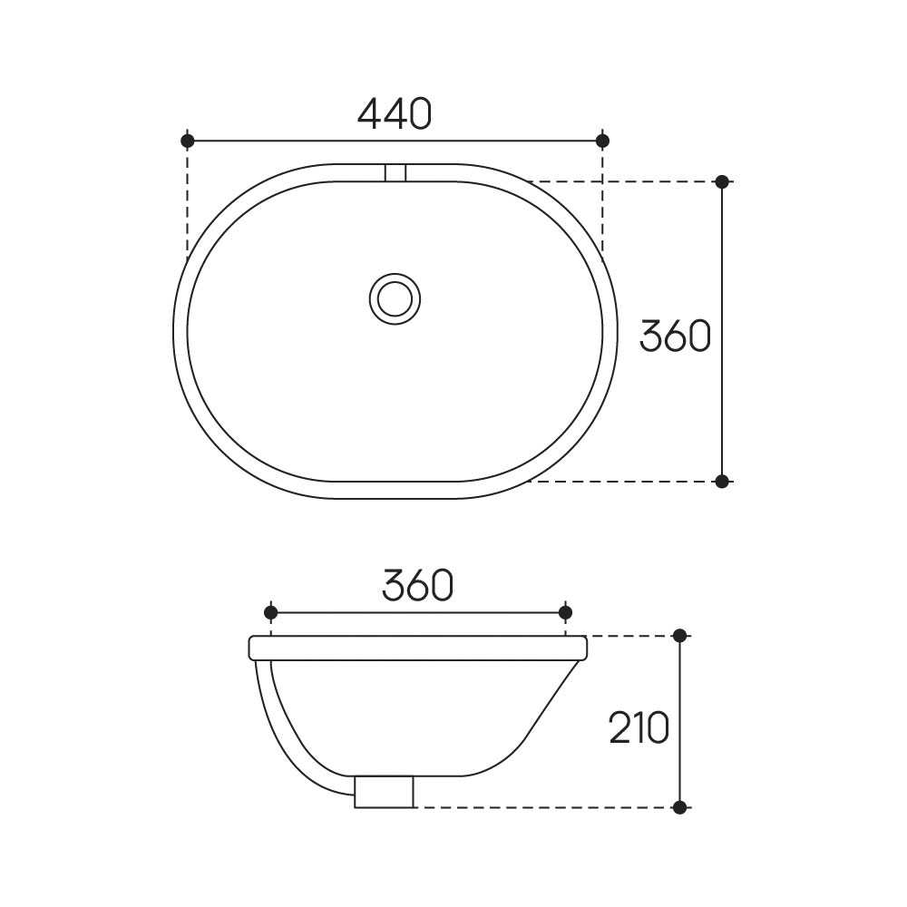 Aqueduto СОТТО/SOTTO Раковина врезная под столешницу овальная 440*360, белый глянцевый