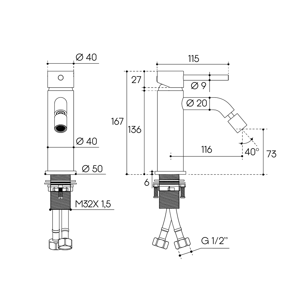GEOMETRICO, Смеситель для биде, Хром GEO0500