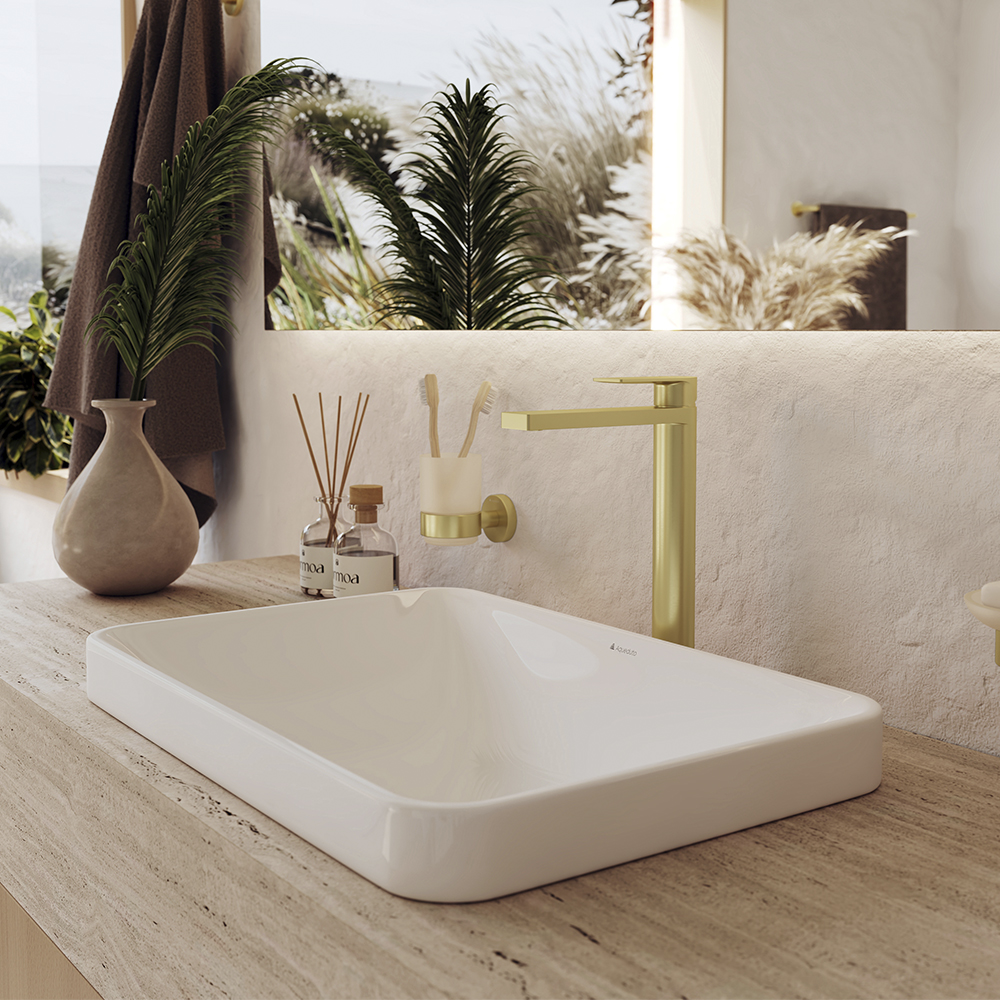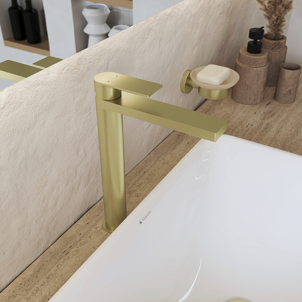 GEOMETRICO, Смеситель для раковины L, Шлифованное золото GEO0350