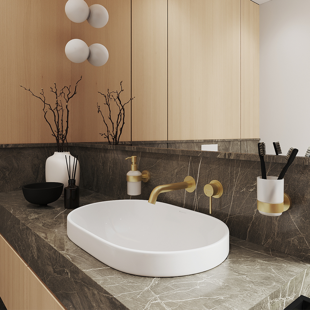 Aqueduto CANO Смеситель для раковины настенного монтажа со скрытой частью, шлифованное золото