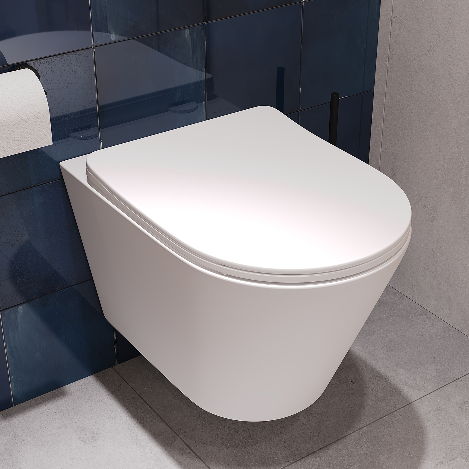 Безободковая чаша, быстросъемное сиденье из дюропласта с функцией плавного закрывания (микролифт), антигрязевое покрытие, устойчивость к царапинам