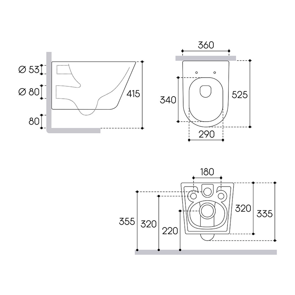 Унитаз подвесной, сиденье, комплект креплений для сиденья и монтажа унитаза, гарантийный талон, инструкция