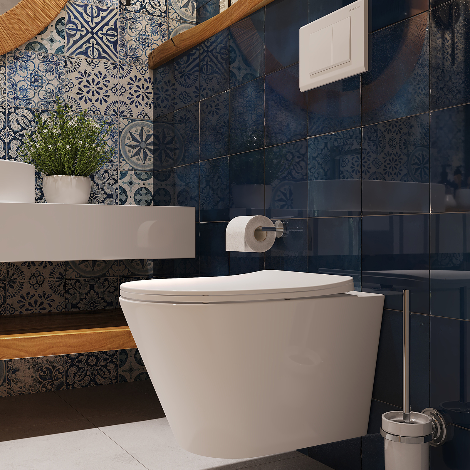 Безободковая чаша, быстросъемное сиденье из дюропласта с функцией плавного закрывания (микролифт), антигрязевое покрытие, устойчивость к царапинам