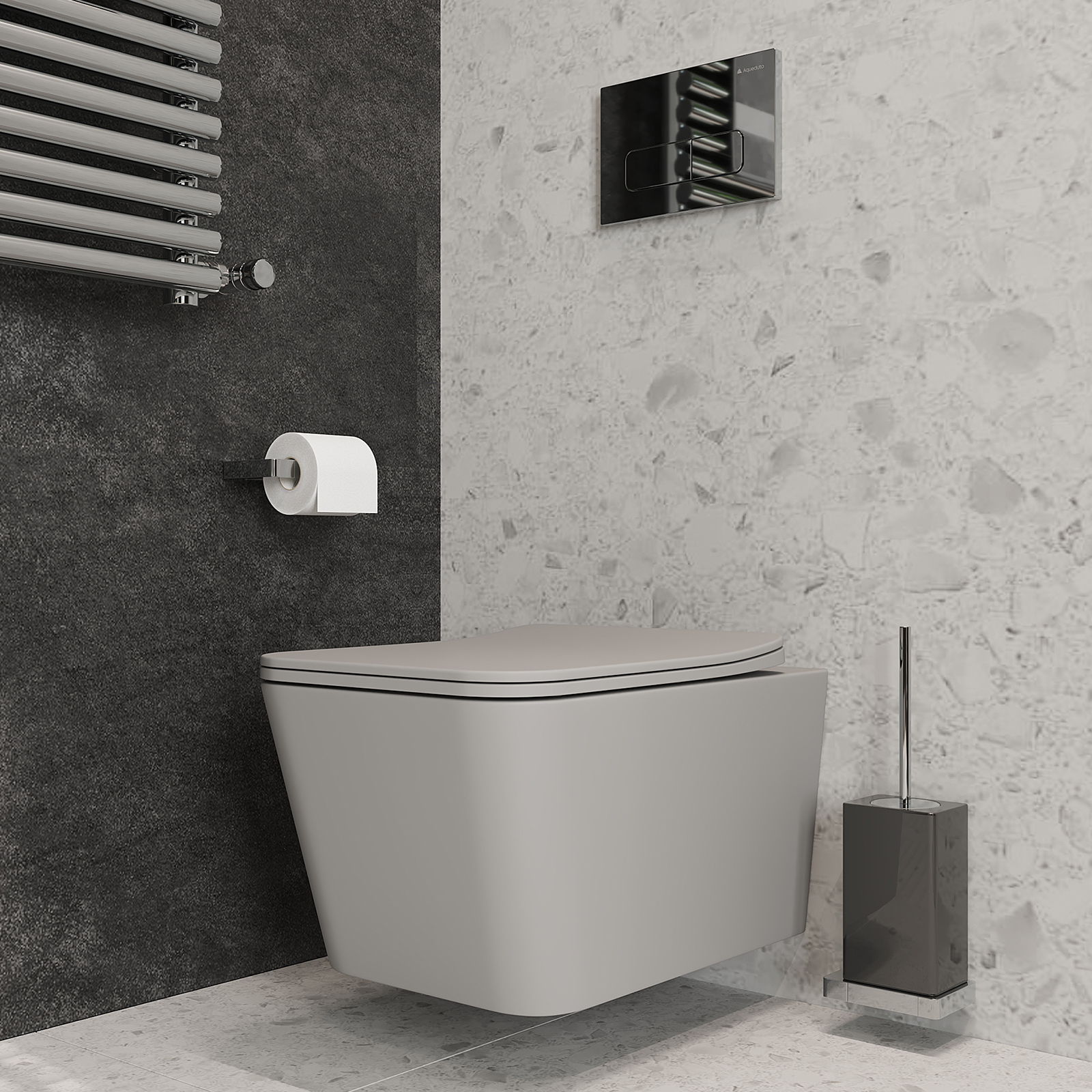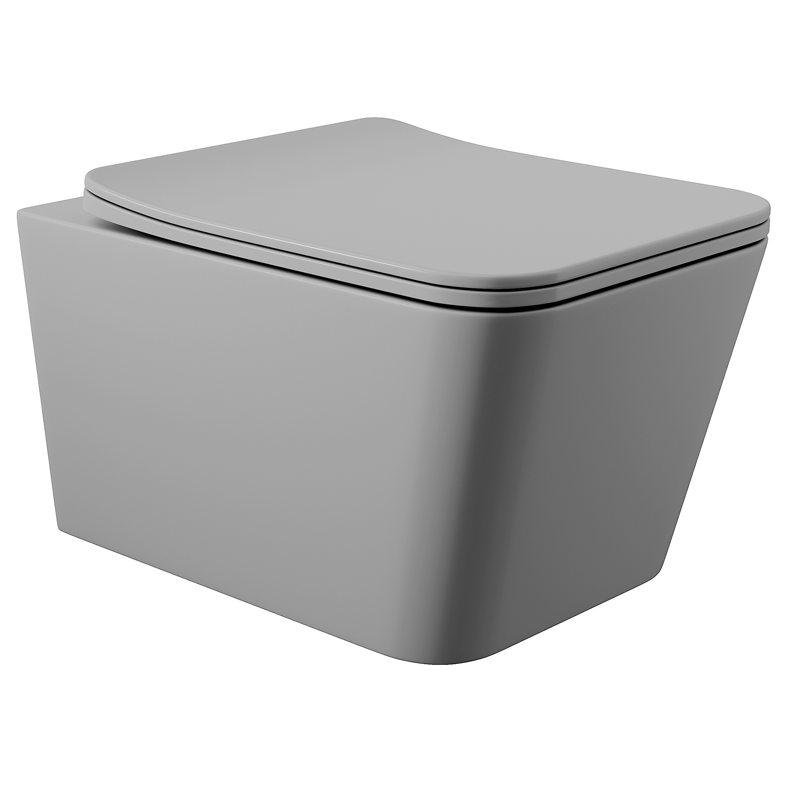 Aqueduto МАСИО/MACIO Унитаз подвесной 520*370 безободковый, сиденье с микролифтом, серый матовый