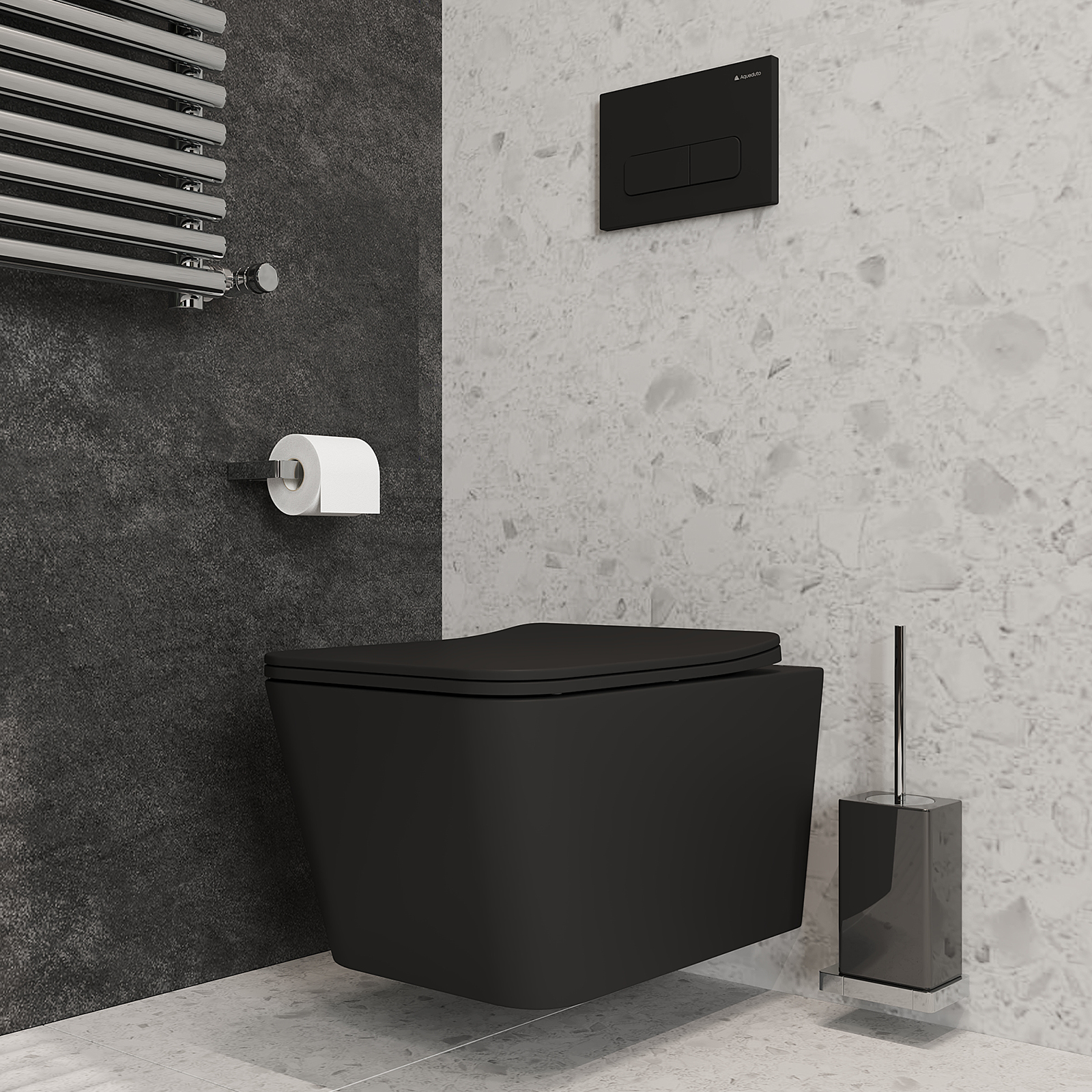 Aqueduto MACIO Унитаз подвесной 520*370 безободковый, сиденье с микролифтом, черный матовый