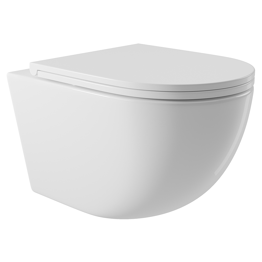Aqueduto OVO Унитаз подвесной 525*360 безободковый, сиденье c микролифтом, белый глянцевый