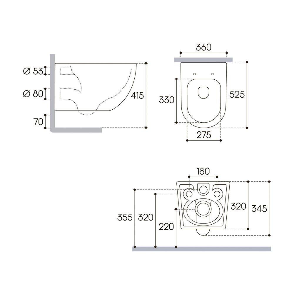 Aqueduto OVO Унитаз подвесной 525*360 безободковый, сиденье с микролифтом, серый матовый