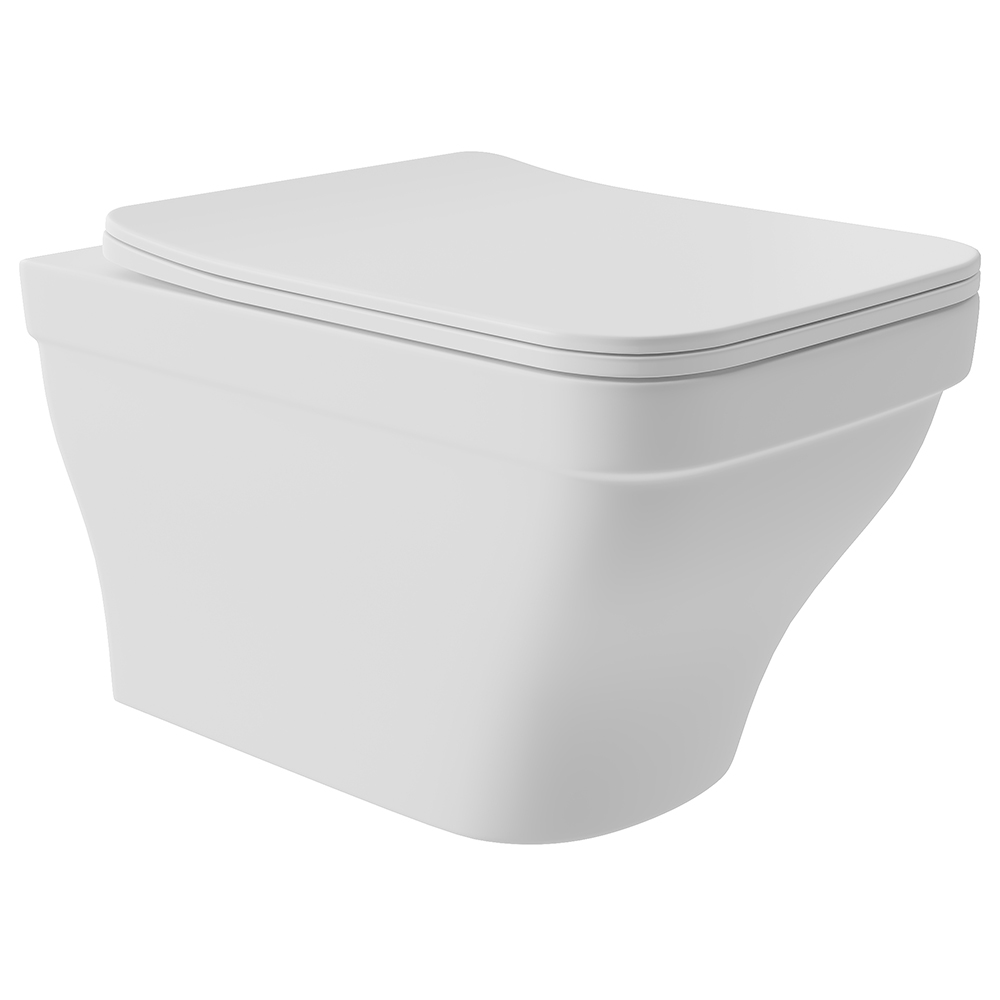 Aqueduto ESTETA Унитаз подвесной 520*370 безободковый, сиденье с микролифтом, белый матовый