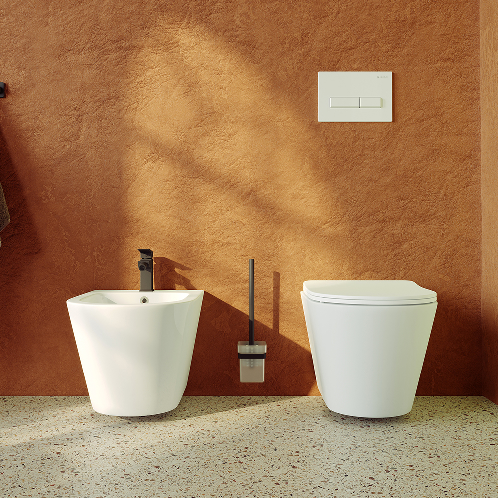 Безободковая чаша, ультратонкое, быстросъемное сиденье из дюропласта с функцией плавного закрывания (микролифт), антигрязевое покрытие, устойчивость к царапинам, смыв Tornado, экономия воды