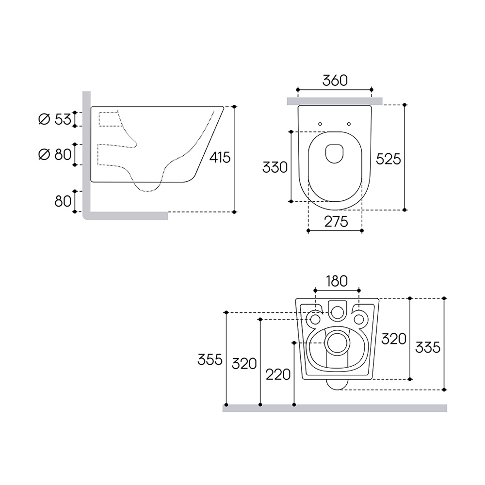 Унитаз подвесной, сиденье, комплект креплений для сиденья и монтажа унитаза, гарантийный талон, инструкция