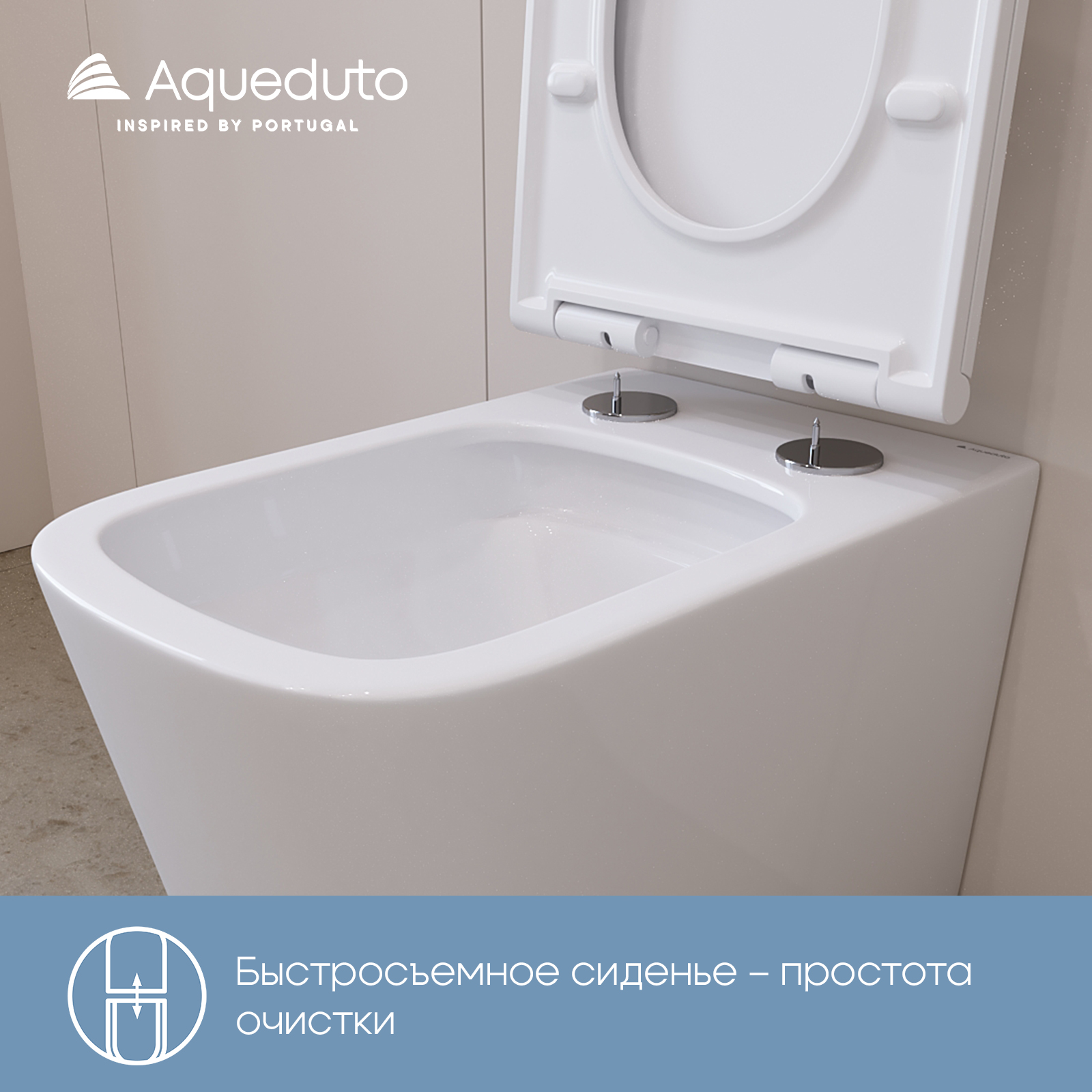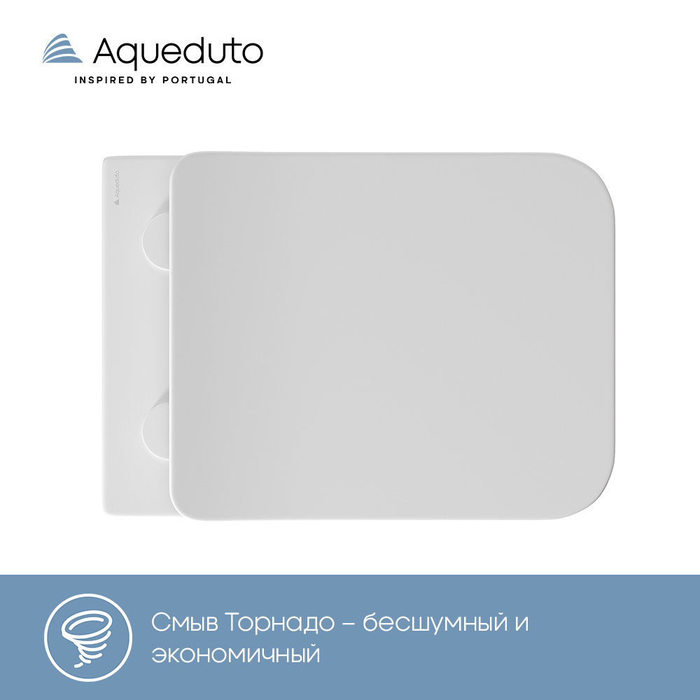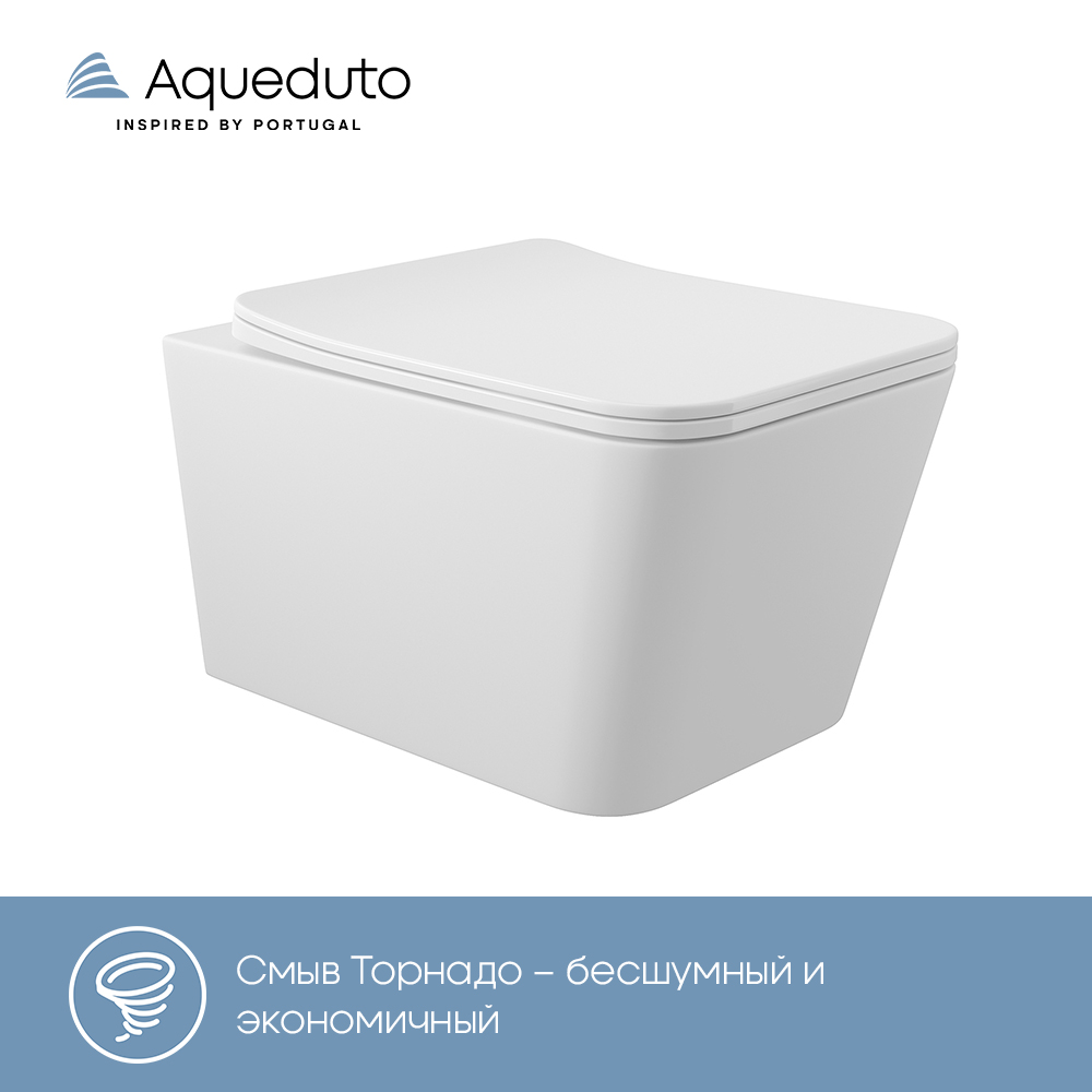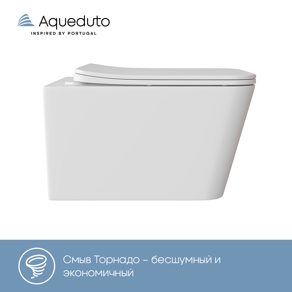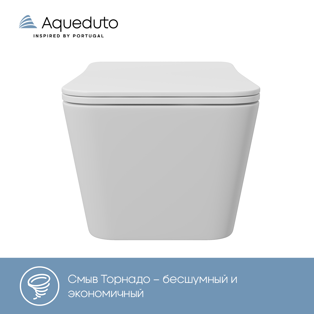 Aqueduto MACIO Tornado Унитаз подвесной 520*370 безободковый, Tornado, сиденье с микролифтом, белый матовый