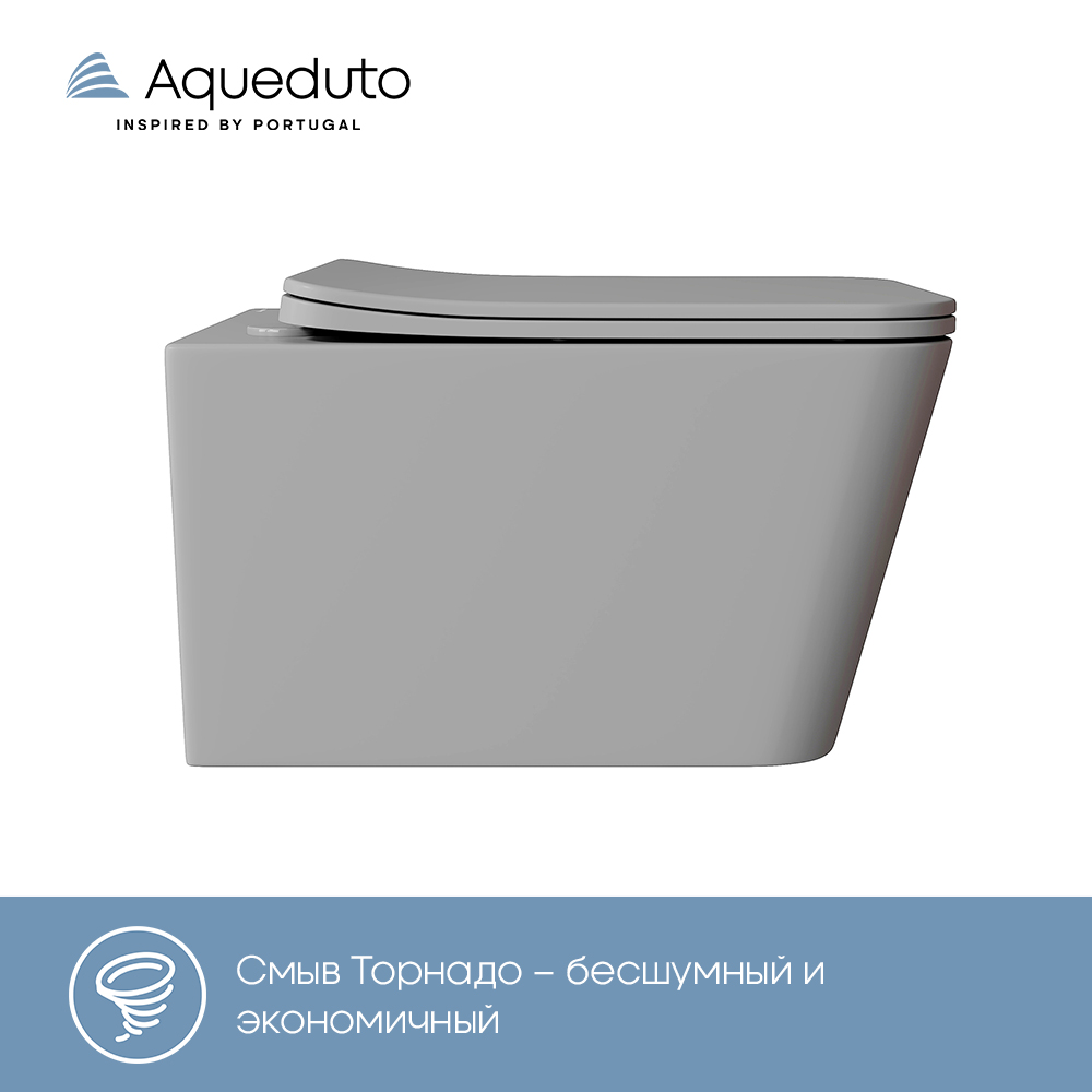 Aqueduto MACIO Tornado Унитаз подвесной 520*370 безободковый, Tornado, сиденье с микролифтом, серый матовый