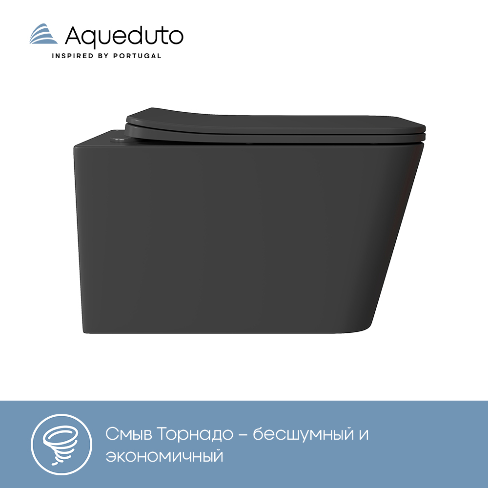 Aqueduto MACIO Tornado Унитаз подвесной 520*370 безободковый, Tornado, сиденье с микролифтом, черный матовый