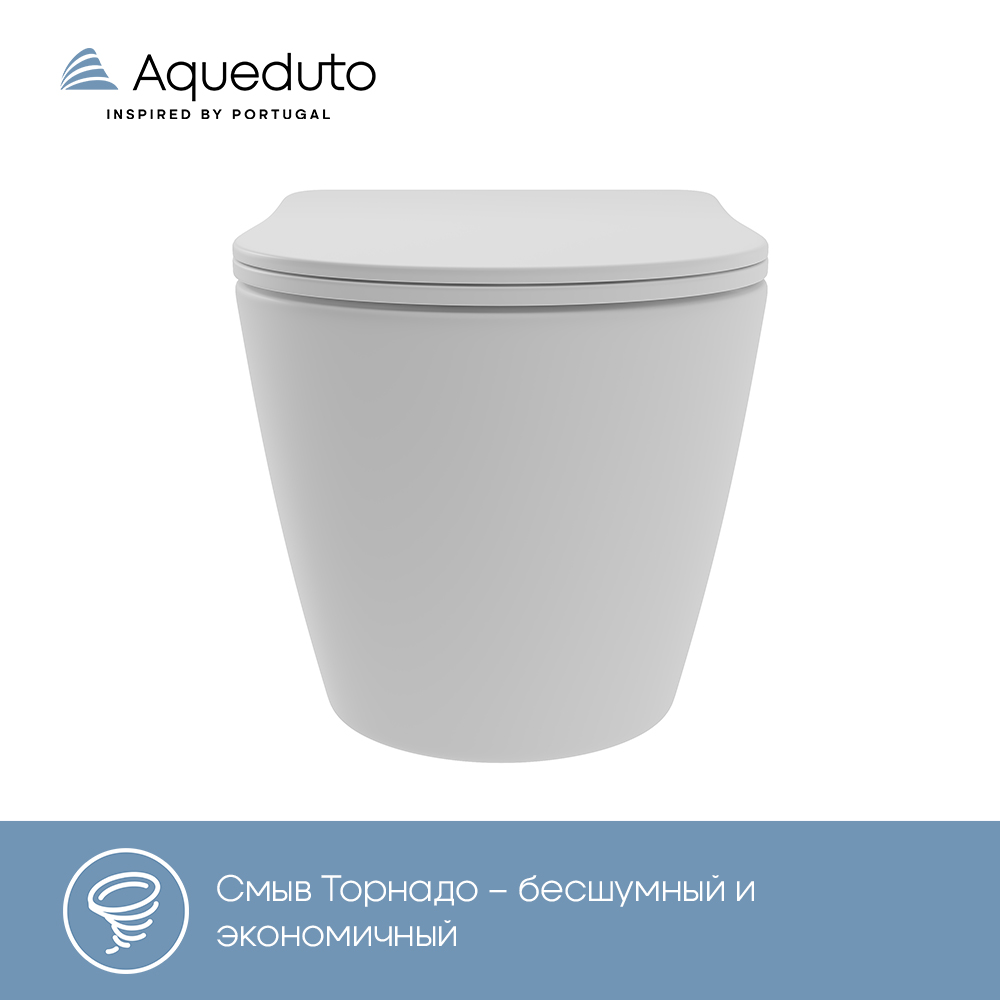 Aqueduto OVO Plus Унитаз подвесной 520*365 безободковый, Tornado, сиденье с микролифтом, белый матовый